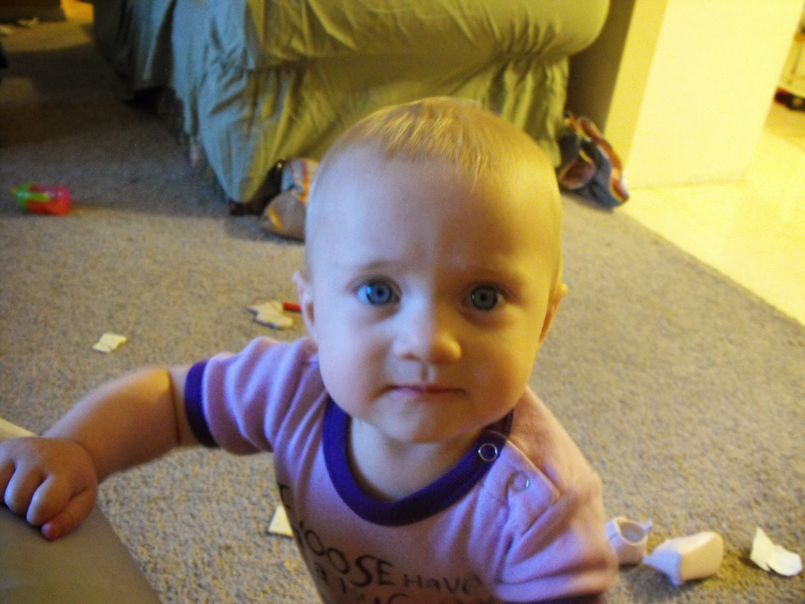 Kathryn is getting big so quickly. She loves to get into everything and is attempting to stand. She still has no teeth. She wakes up frequently in the night. If we let her cry it out, she wakes up her brother and dad. I can't put Daniel in the living room because Chris gets up so early. I spend most of my night asleep in the chair with Kathryn asleep on my lap.